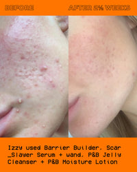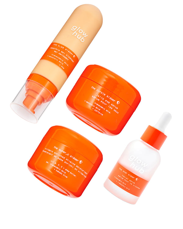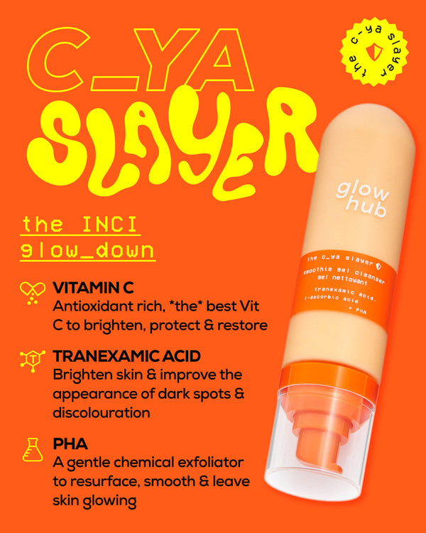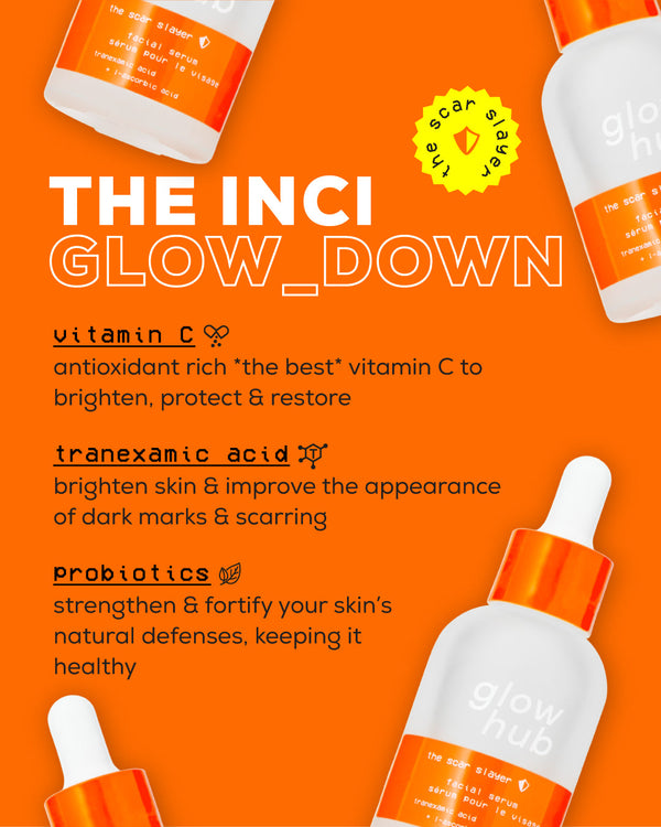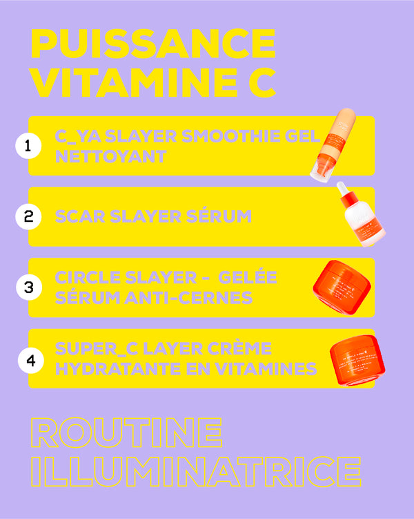 La routine ultime à la vitamine C. Pour une peau lumineuse, uniforme et éclatante. Si vous cherchez à cibler la pigmentation tenace ou à vous attaquer aux taches sombres laissées par les boutons, cette routine est faite pour vous. Riche en vitamine C et en acide tranexamique, Scar Slayer est à votre service pour une peau joyeuse et lumineuse.