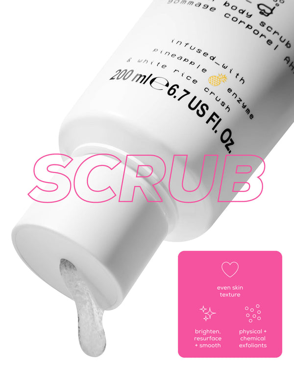 QUOI ? Un gommage corporel chimique et enzymatique pour éliminer les cellules mortes de la peau et laisser la peau douce et soyeuse, lisse et éclatante !