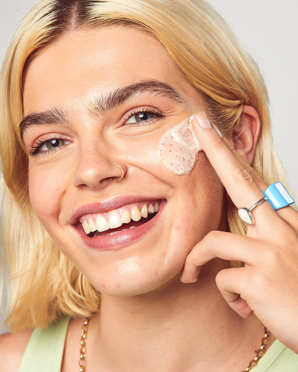 QUOI ? un exfoliant chimique + physique pour éliminer en douceur les cellules mortes de la peau, renouveler la peau fatiguée et nettoyer profondément les pores.