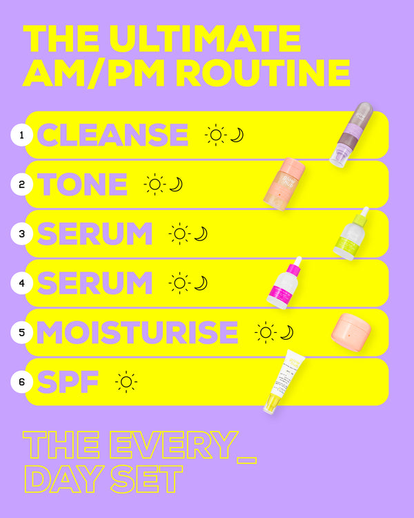 La routine quotidienne pour maintenir une peau saine, heureuse et éclatante. Cette routine douce couvre *toutes* les bases pour garder la peau propre et débarrassée des impuretés, hydratée, nourrie et protégée.