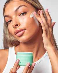 Le double nettoyage permet d'obtenir un nettoyage *sérieusement* profond. Faites fondre le maquillage et la saleté en utilisant le baume nettoyant hyper nourrissant et hydratant à base d'huile. Suivez avec Purifie & Éclaircie Gelée nettoyante pour prendre soin de ce que vous ne pouvez pas toujours voir, doux + riche en antioxydants.